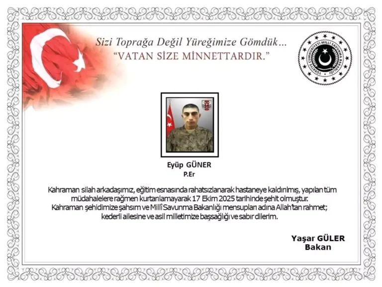 • Tokat'ta eğitim esnasında rahatsızlanan Piyade Er Güner şehit oldu